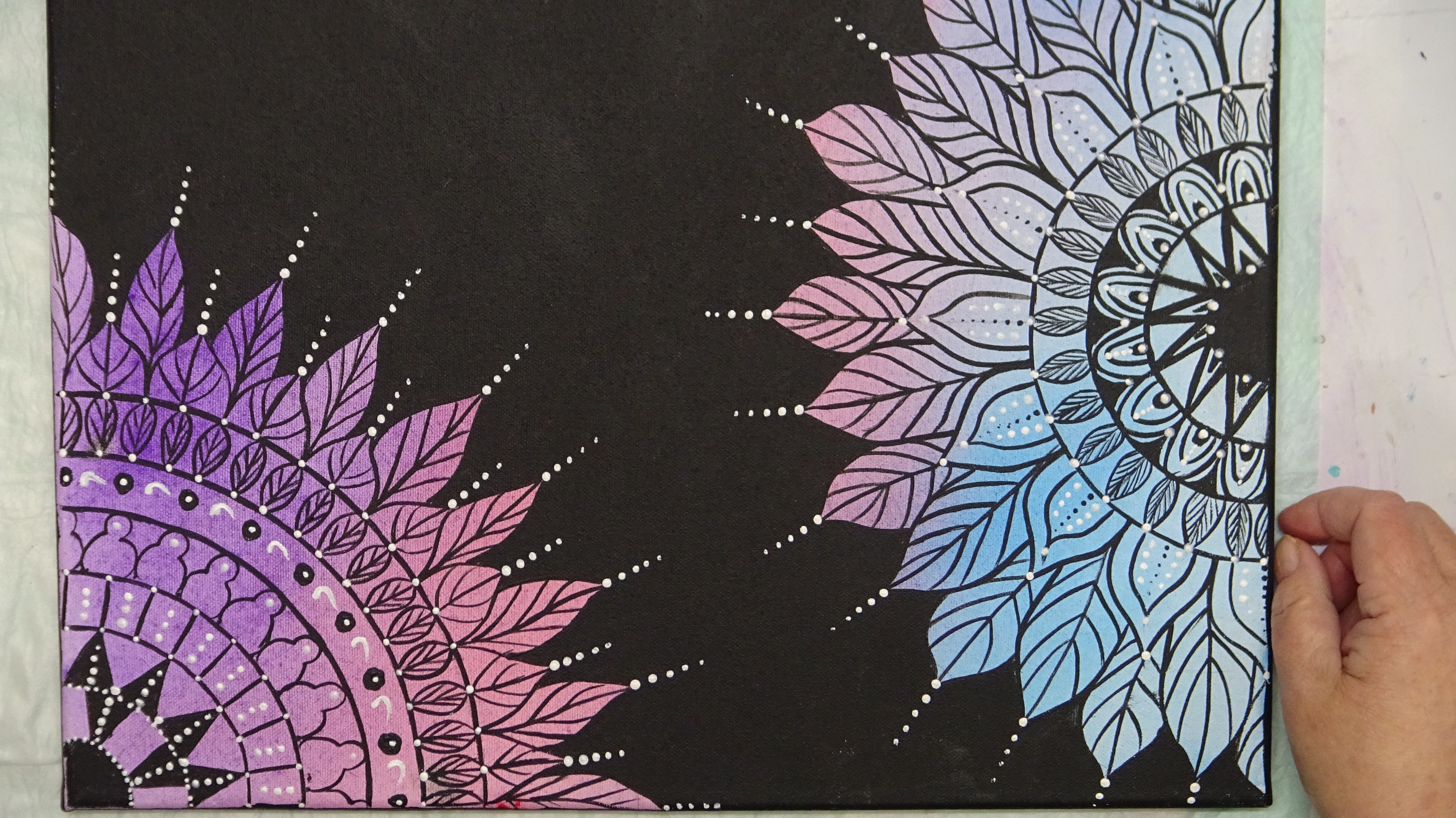 I denne leksjonen lærer du å tegne opp mandala, hvordan få fargene til å få en flott myk overgang, om utstyr og hva man bør tenke på når du skal male en. Du ser meg fra begynnelse til slutt hvordan jeg maler en fargerik mandala som er veldig lik den på bildet. Du lærer teknikken hvordan få fargene til gli flott inni hverandre